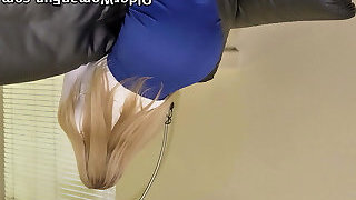 submisive blindfolded badgirl in ripped stocking sucking and fucking