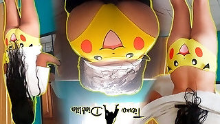 wundersame mädchen-mädchen-fräulein schreit vor freude, als ihr komplize sie mit einem seil zerreißt