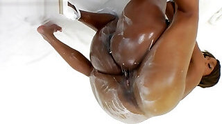 Super-hot plumpy fuckslut with a fat ass tries to handle utterly big black dick in her mouth and pussy
