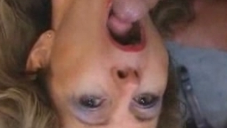 buxomy blondie se traga cada gota de esperma después de que el tipo la golpea duro como una roca