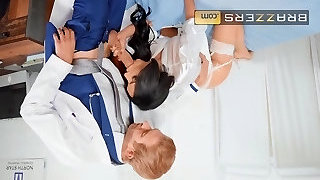 Sexy Ash-blonde Gal & Her Buxom Ebony Bestie Enjoy Molten Swap-stepdad 4some During Gynecological Examination