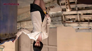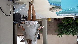 Big Melon busty milf white girl maid with hot juicy giant ass in mini dress panties to the side cleaning house showering