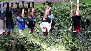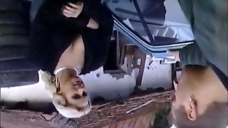 2 amazing German ladies getting their brown sphincters smashed in the backyard