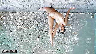 Flawless ultra-cutie ballerina Annett A with a nimble magnificent female body poses for me in a black stage costume. T-6(Six)