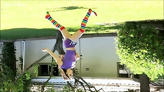 A skinny brunette after a good stretch tries molten anal sex with her trainer. She was pleased with the jizm on her donk.