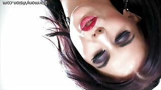 Hot erotic dark-haired Rachel Starr is squatting on the floor at front of her boyfriend and hotly sucking his huge dick.