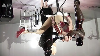 Fat dildo on my fucking machine stretches my pussy extremely and a second dildo in my arse - double penetration Creampie