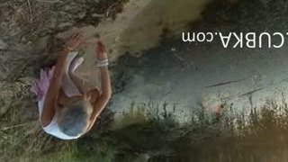 Small titted nubile Bella masturbates outdoors
