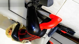 Super Hot Blonde Fucking A Suction Cup Dildo Stuck To The Wall