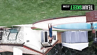 Super-sexy girl Domino blows on the poolside and gets pounded remarcably well