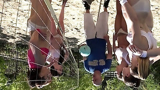 4 girls and 3 dudes are having a mischievous orgy with anal sex, double penetrations and squirt
