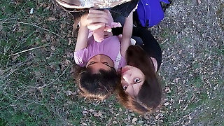 Mia's hottest friend helps her with the all girl tricks by the river